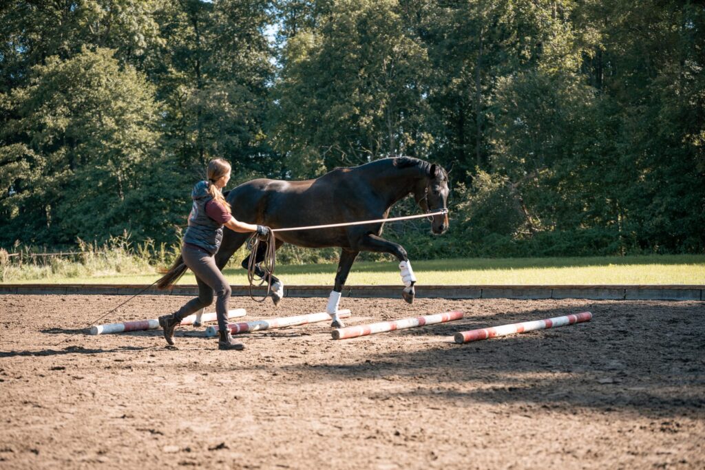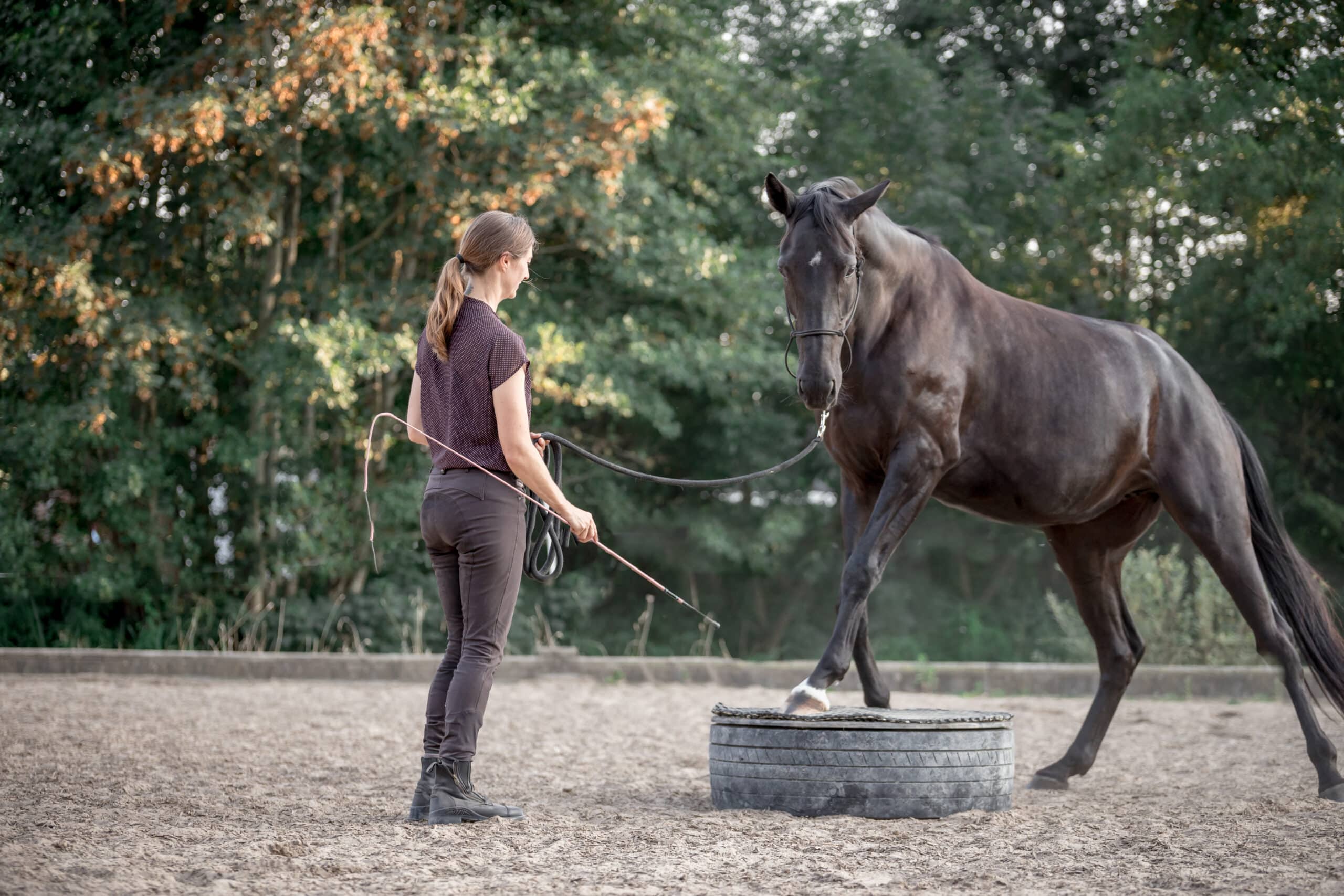 Die Arbeit vom Boden ist ein wichtiger Baustein in der ganzheitlichen Ausbildung zum Reitpferd. Bodenarbeit dient als Vorbereitung oder Unterstützung des Reitens. Sie kann Rehabilitationsphasen unterstützen oder dazu beitragen Pferde fit zu halten, die nicht mehr geritten werden können.